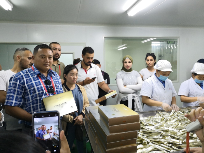 公司高董事長親自帶領培訓班學員參觀了"魚鱗魚皮提取膠原蛋白肽"車間,GMP標準車間,技術研發中心,產品展示廳等。隨后,公司外貿部向學員介紹公司的發展歷程、主要從事海洋生物研發技術、膠原蛋白肽產業化生產。學員在品嘗產品后,高度贊揚了海星公司膠原蛋白肽產品的質量及熱情的款待服務,對膠原蛋白肽的產品產生濃厚的興趣并期望今后與我司能達成相關的合作事宜。